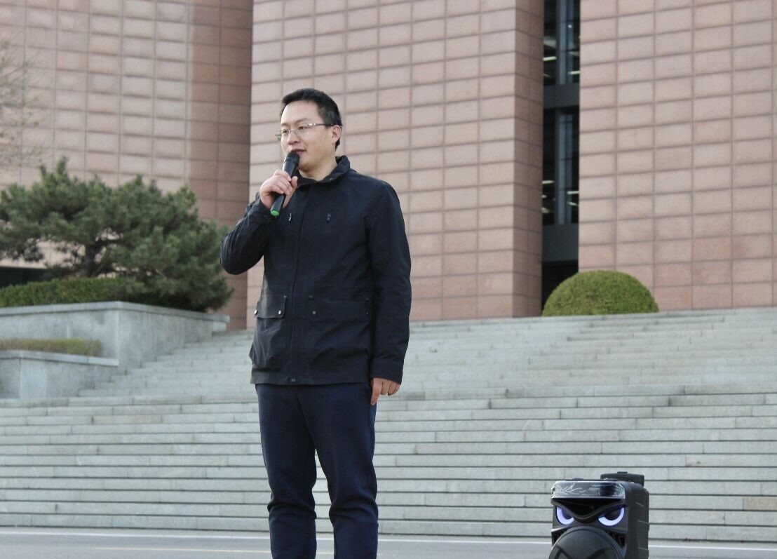 于兴隆山校区图书馆前举行升旗仪式。2019级辅导员田庚出席本次升旗仪式。第38届学生工作委员会委员、免费无码a片
