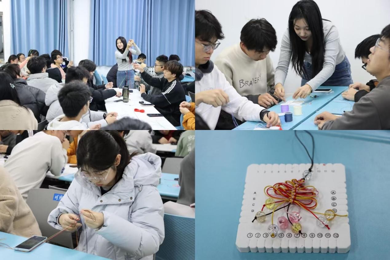 2024级研究生艾奕含担任主讲,为现场参与学生带来专业细致的绳结编织指导。