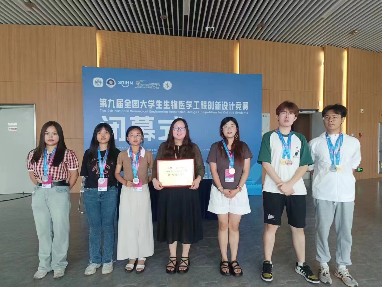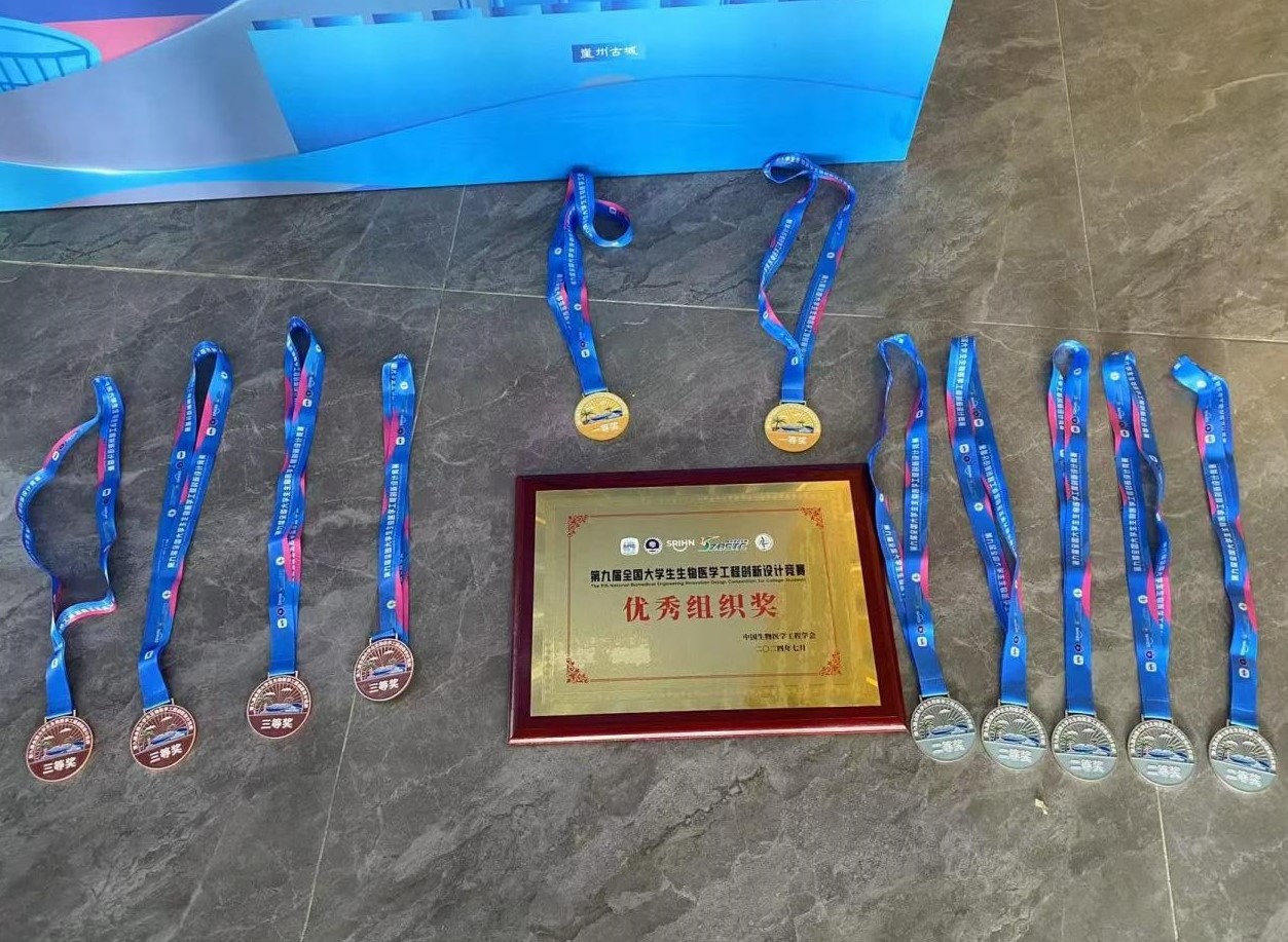 代表队荣获全国一等奖2项(比例不超过全部参赛队伍的5%)、二等奖6项、三等奖5项,同时获得“优秀组织奖”。本次竞赛吸引了包括清华大学、北京大学、复旦大学、浙江大学及上海交通大学等250所高校的近万名学子参加,共接收有效作品2107件,展示我国生物医学工程领域的最新研究成果与创新思维。